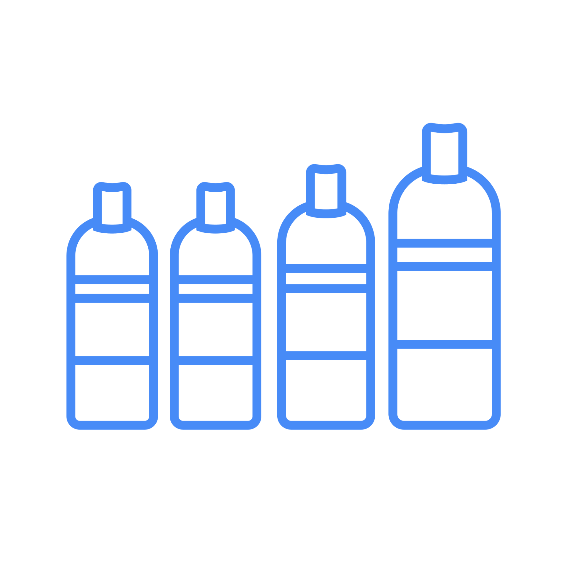 In unterschiedlichen Größen - von 2 l bis 50 l (abhängig vom Produkt)